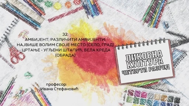ОШ4 – Ликовна култура, 32. час: Амбијент;различити амбијенти;Највише волим своје место (село, град), цртање-угљени штапић...
