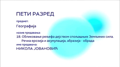 ОШ5 – Географија, 18. час: Обликовање рељефа дејством спољашњих Земљиних сила. Речна ерозија... (обрада)