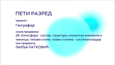 ОШ5 – Географија, 28 час: Атмосфера – састав, структура, климатски елементи и чиниоци, типови климе, човек и клима...