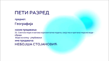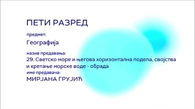 ОШ5 – Географија, 31. час: Светско море и његова хоризонтална подела, својства и кретање морске воде (обрада), воде...