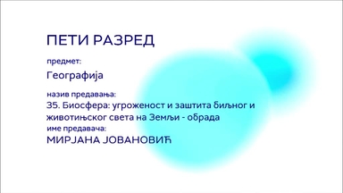 ОШ5 – Географија, 35. час: Биосфера: угроженост и заштита биљног и животинског света на Земљи (обрада)