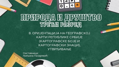 ОШ3 – Природа и друштво, 7. час: Оријентација на географској карти Републике Србије (картограф. боје и картограф. знаци), обрада
