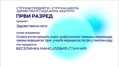 СШ1 – Здравствена нега, 2. час: Основни етички принципи, кодекс професионалног понашања, комуникација, чување медицинске тајне