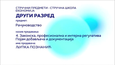 СШ2 – Рачуноводство, 4. час: Законска, професионална и интерна регулатива, појам добављача и документација