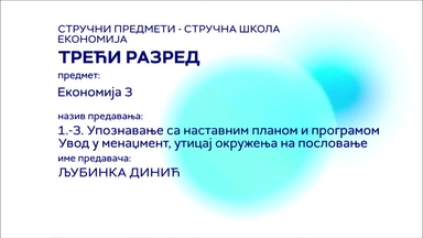 СШ3 – Економија, 1, 2. и 3. час: Упознавање са наставним планом и програмом, увод у менаџмент, утицај окружења на пословање