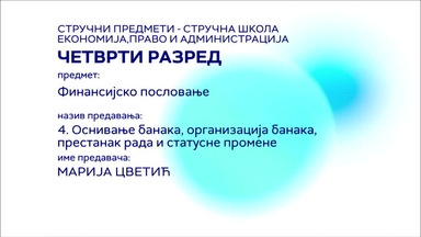 СШ4 – Финансијско пословање, 4. час: Оснивање банака, организације банака, престанак рада и статусне промене
