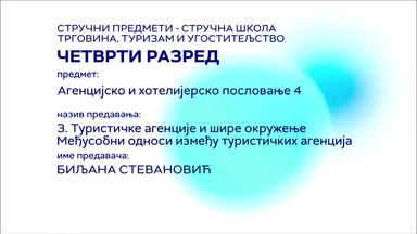 СШ1 – Агенцијско и хотелијерско пословање, 3. час: Врсте туристичких агенција. Функције (делатности) туристичких агенција...