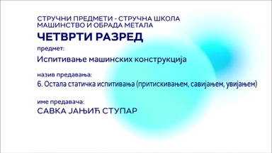 СШ4 – Испитивање машинских конструкција, 6. час: Остала статичка испитивања (притискивањем, савијањем, увијањем)