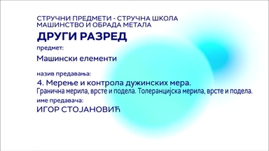 СШ2 – Машински елементи, 4. час: Мерење и контрола дужинских мера. Гранична мерила, врсте и подела. Толеранцијска мерила...