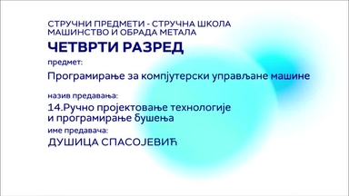 СШ4 – Програмирање за компијутерски управљане машине, 14. час: Ручно пројектовање технологије и програмирање бушења