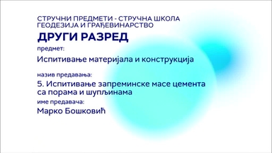 СШ2 – Испитивање материјала и конструкција, 5. час: Испитивање запреминске масе цемента са порама и шупљинама