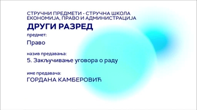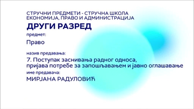 СШ2 – Право, 7. час : Поступак заснивања радног односа, пријава потребе за запошљавањем и јавно оглашавање