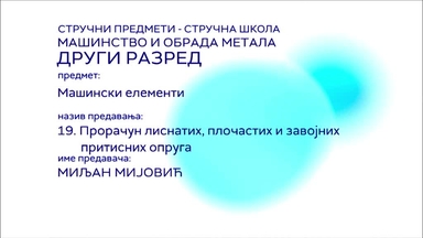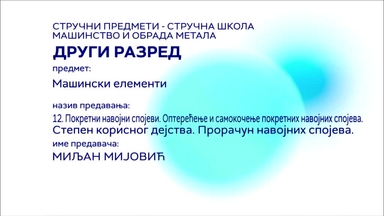 СШ2 – Машински елементи, 12. час: Покретни навојни спојеви. Оптерећење и самокочење покретних навојних спојева...