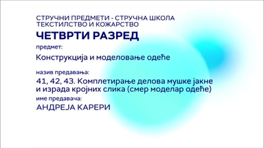 СШ4 – Конструкција и моделовање одеће, 41, 42. и 43 час: Комплетирање делова мушке јакне и израда кројних слика