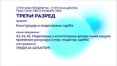 СШ3 – Конструкција и моделовање одеће, 43, 44. и 45. час. час: Моделовање и комплетирање делова м. кошуље применом рачунара