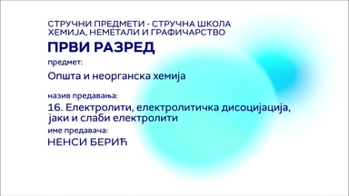 СШ1 – Општа и неорганска хемија, 16. час: Електролити, електроллитичка дисоцијација, јаки и слаби електролити