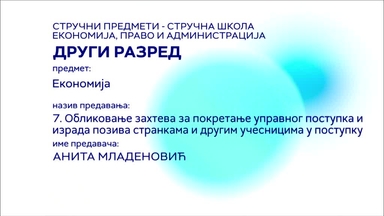 СШ2 – Економија, 7. час: Обликовање захтева за покретање управног поступка и израда позива странкама и другим учесницима…