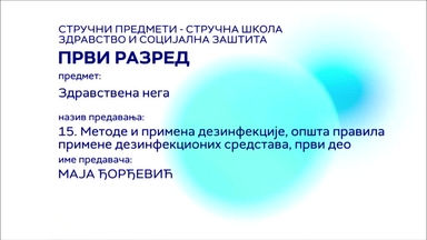 СШ1 – Здравствена нега, 15. час: Методе и примена дезинфекције, општа правила примене дезинфекционих средстава, први део