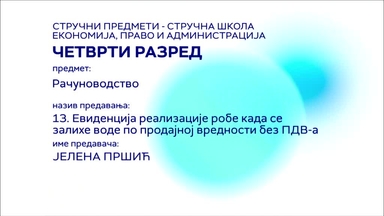 СШ4 – Рачуноводство, 13. час: Евиденција реализације робе када су залихе воде по набавној вредности без ПДВ-а