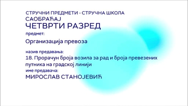 СШ4 – Организација превоза, 18. час: Прорачун броја возила за рад и броја превезених путника на градској линији