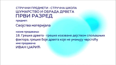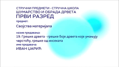 СШ1 – Својства материјала, 19. час: Грешке дрвета – грешке боје дрвета које умањују чврстоћу, грешке од инсеката