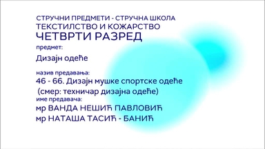 СШ4 – Конструкција и моделовање одеће, 60-66. часа: Моделовање и комплетирање мушког прслука (смер: тех. дизајнер одеће)