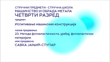 СШ4 – Испитивање машинских конструкција, 23. час: Метода фотоеластичности, уређај, фотоеластични материјали