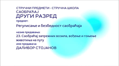 СШ2 – Регулисање и безбедност саобраћаја, 23. час: Саобраћај запрежних возила, вођење и гоњење животиња на путу