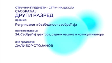СШ2 – Регулисање и безбедност саобраћаја, 24. час: Саобраћај трактора, радних машина и мотокултиватора