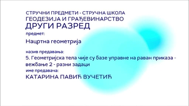 СШ2 – Нацртна геометрија, 5. час: Геометријска тела чије су базе управне на раван приказа – вежбање 2 (разни задаци)