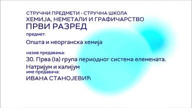 СШ1 – Општа и неорганска хемија, 30. час: Прва (la) група периодног система елемената. Натријум и калијум
