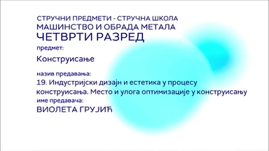 СШ4 – Конструисање, 7. час: Индрустријски дизајн и естетика у процесу конструисања. Место и улога оптим. у конструисање