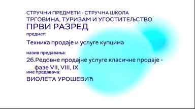 СШ1 – Техника продаје и услуге купцима, 26. час: Редовне продајне услуге класиичне продаје – фазе VII, VIII, IX