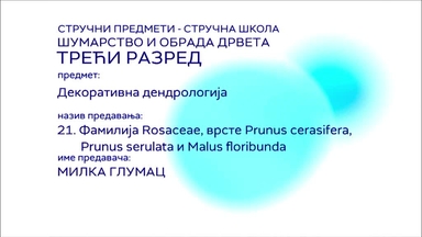СШ3 – Декоративна дендрологија, 21. час: Фамилија Rosaceae, врсте Prunus cerasifera, Prunus serulata и Malus floribunda