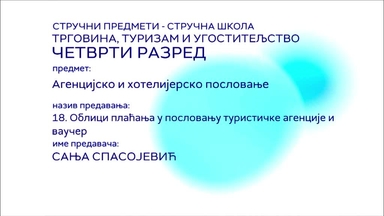 СШ4 – Агенцијско и хотелијерско пословање, 18. час: Облици плаћања у пословању туристичке агенције и ваучер