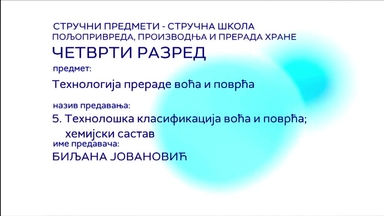 СШ4 – Технологија прераде воћа и поврћа, 5. час: Технолошка класификација воћа и поврћа; хемијски састав