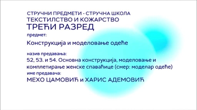 СШ3 – Конструкција и моделовање одеће, 52, 53. и 54. час: Основна конструкција, моделовање и комплетирање женске спаваћице