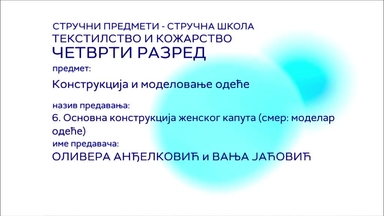 СШ4 – Конструкција и моделовање одеће, 6. час: Основна конструкција женског капута (смер: моделар одеће)