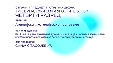 СШ4 – Агенцијско и хотелијерско пословање, 20. час: Финансирање пословања туристичке агенције и наплата потраживања