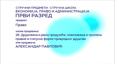 СШ1 – Право, 26. час: Друштвена и јавна предузећа, повезивање и промена правне и статусне форме привредног друштва