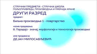 СШ2 – Биљна производња 1 - повртарство, 8. час: Парадајз – значај, морфологија и технологија производње
