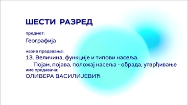 ОШ6 – Географија, 13. час: Величина, функције и типови насеља. Појам, појава, положај насеља (обрада, утврђивање)