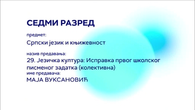 ОШ7 – Српски језик и књижевност, 29. час: Језичка култура: Исправка првог школског писменог задатка (колективна)