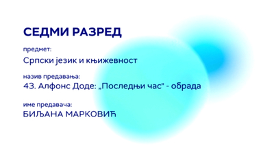 ОШ7 – Српски језик и књижевност, 72. час: Домаћа лектира: Свети Сава у књижевности - одломак из Житија... (обрада)