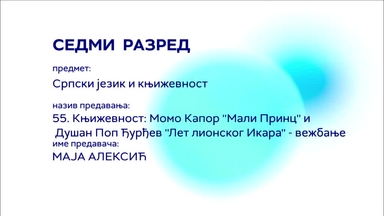 ОШ7 – Српски језик и књижевност, 55. час: Момо Капор „Мали Принц“, Душан Поп Ђурђев „Лет лионског Икара (вежбање)