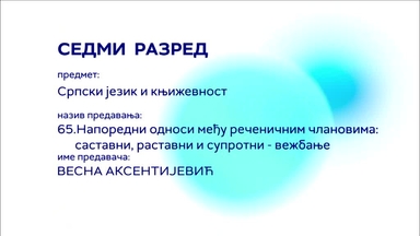 ОШ7 – Српски језик и књижевност, 65. час: Напоредни односи међу реченичним члановима: саставни, раставни... (вежбање)