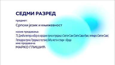 ОШ7 – Српски језик и књижевност, 73. час: Домаћа лектира: избор из народних прича и предања о Светом Сави... (обрада)