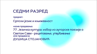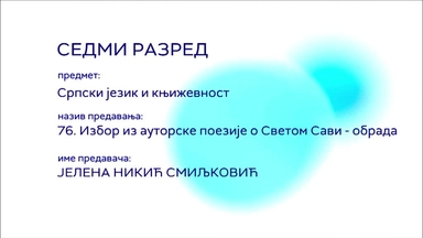 ОШ7 – Српски језик и књижевност, 77. час: Језичка култура: избор из ауторске поезије о Светом Сави-рецитовање (утврђивање)