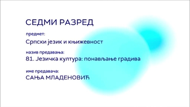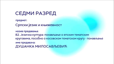 ОШ7 – Српски језик и књижевност, 82. час: Језичка култура: понављање о епским тематским круговима... (понављање)
