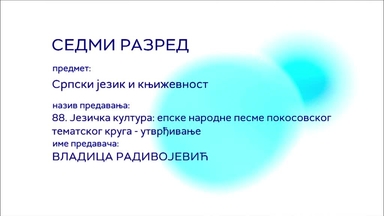 ОШ7 – Српски језик и књижевност, 88. час: Језичка култура: епске народне песме покосовског тематског круга (утврђивање)